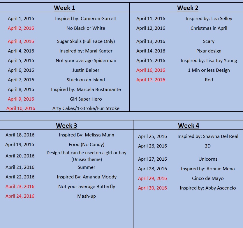 April Challenge List